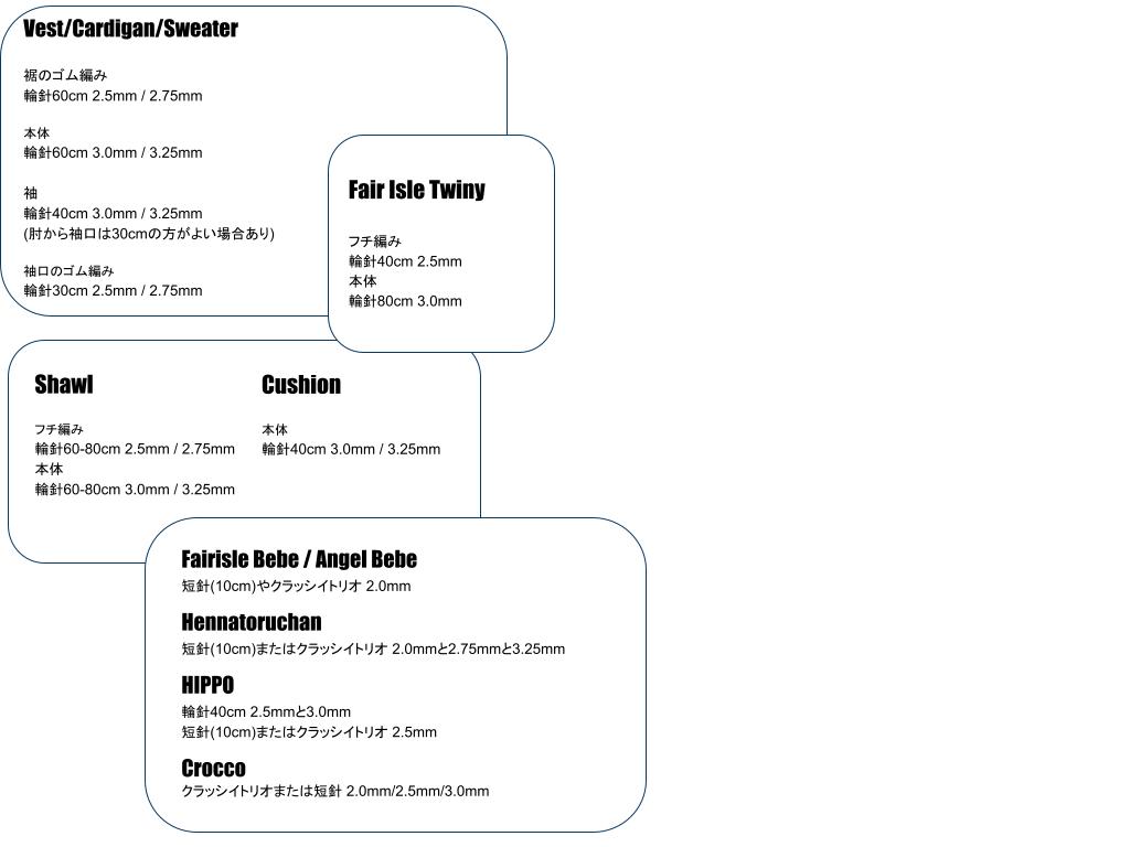 初めての方は、目安となるものを購入し、試し編みをして頂くことになります